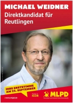 für die Marxistisch-Leninistische Parte Deutschlands/Offene Liste. Er ist 65 Jahre alt, verheiratet, hat zwei erwachsene Söhne. Er hat früher bei Bosch als Physiker gearbeitet und ist jetzt Rentner.Jede Woche ist er bei der Montagsdemo gegen die Hartz-Gesetze auf dem Marktplatz.