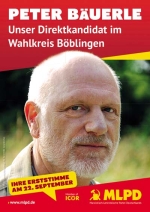 Der 62-jährige Peter Bäuerle ist in Sindelfingen als Sohn eines Daimler-Arbeiters und einer Schneiderin aufgewachsen. Er ist Diplommathematiker, hatte in Berlin studiert und arbeitete 30 Jahre als Softwareentwickler in einem IT Konzern. Heute beteiligt er sich als Rentner an Forschungsprojekten im IT Bereich und schreibt Artikel über die gesellschaftliche Rolle des Internet. Der Hobbymotorradfahrer ist Mitglied der IG-Metall und in Vereinen wie dem VfL Sindelfingen Abt. Radsport, der IG-Kultur Sindelfingen und den Naturfreunden. Er ist außerdem aktiver Teilnehmer der Montagsdemo Sindelfingen. In der örtlichen Musikscene ist er auch als Rock Gitarrist bekannt.