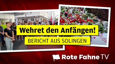- Die MLPD wies sofort auf den faschistischen Charakter der Tat hin. Ob islamistisch verbrämt oder völkisch-deutschnational: Faschismus ist eine menschenverachtende, zutiefst reaktionäre Weltanschauung, hinter der die reaktionärsten Kreise des Imperialismus stecken. Zwischen beiden Spielarten des Faschismus gibt es zudem enge connections. Der faschistische IS wird maßgeblich gefördert von neuimperialistischen Ländern wie der Türkei oder Katar, zu denen die Bundesregierung beste Beziehungen pflegt. Als wirksame Gegenmaßnahme fordert die MLPD ein drastisches Vorgehen gegen faschistische Organisationen aller Couleur und für das vollständige Verbot jeglicher faschistischer Propaganda. Bereits am Sonntag organisierte sie in Solingen Trauer und Protest. Bei einem Aufmarsch deutscher Faschisten riefen die Solinger Anwohner dagegen „Schämt Euch!“