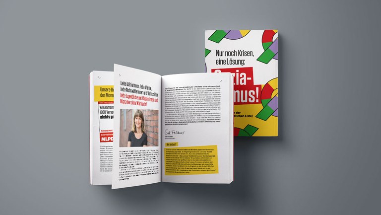 Auf den folgenden Seiten legen wir unser Wahlprogramm dar. Gerne diskutieren wir darüber bei unserem Straßenwahlkampf: Sie treffen uns bei Straßenumzügen in Wohngebieten, an Werkstoren, Unis, Schulen – auch nach der Wahl.