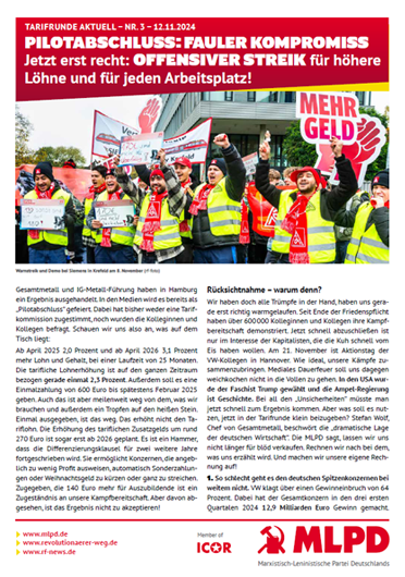 Vordergrundbild z.B. ein Screenshot des Flugblattes Hintergrundbild z.B. ein Foto 319 * 177 Pixel breit Text kurzer Anreißer z.B. "Erklärung des Zentralkomitees der MLPD: Aktiver Widerstand gegen imperialistische Kriegsvorbereitung!" Tarifrunde Aktuell 3: Pilotabschluss: fauler Kompromiss. Jetzt erst recht: Offensiver Streik für höhere Löhne und für jeden Arbeitsplatz! Buttontext z.B. "Flugblatt lesen" Flugblatt lesen Buttonlink z.B. "2018/kw14/dieses-flugblatt-in-pdf-format-in-farbe" 2024/11/pilotabschluss-fauler-kompromiss Inhalte Dieser Ordner hat zur Zeit keinen Inhalt.