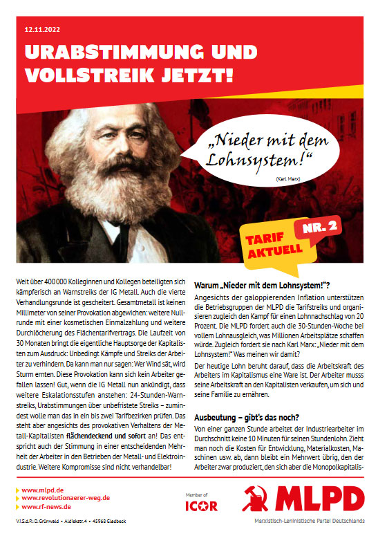 Vordergrundbild z.B. ein Screenshot des Flugblattes Hintergrundbild z.B. ein Foto 319 * 177 Pixel breit Text kurzer Anreißer z.B. "Erklärung des Zentralkomitees der MLPD: Aktiver Widerstand gegen imperialistische Kriegsvorbereitung!" Urabstimmung und Vollstreik jetzt! Buttontext z.B. "Flugblatt lesen" Flugblatt lesen Buttonlink z.B. "2018/kw14/dieses-flugblatt-in-pdf-format-in-farbe" 2022/11/urabstimmung-und-vollstreik-jetzt Inhalte Dieser Ordner hat zur Zeit keinen Inhalt.